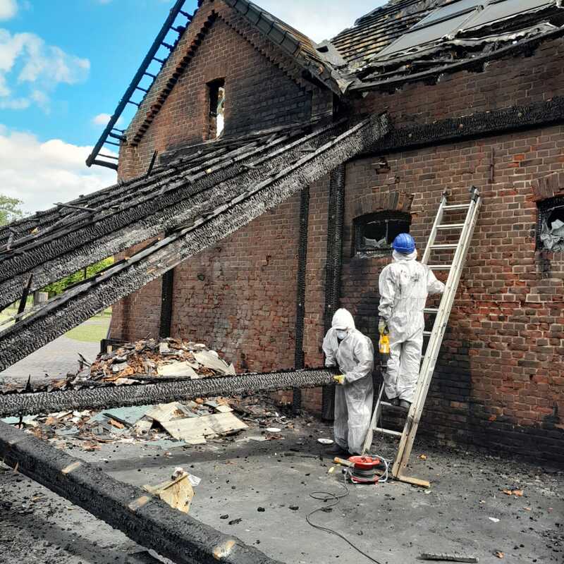 Zusätzlich setzen wir Spezialverfahren wie Sand- oder Eisstrahlen sowie technische Trocknung ein, etwa bei Brand- oder Wasserschäden. So sorgen wir für eine fachgerechte Wiederherstellung – sichtbar und strukturell.
